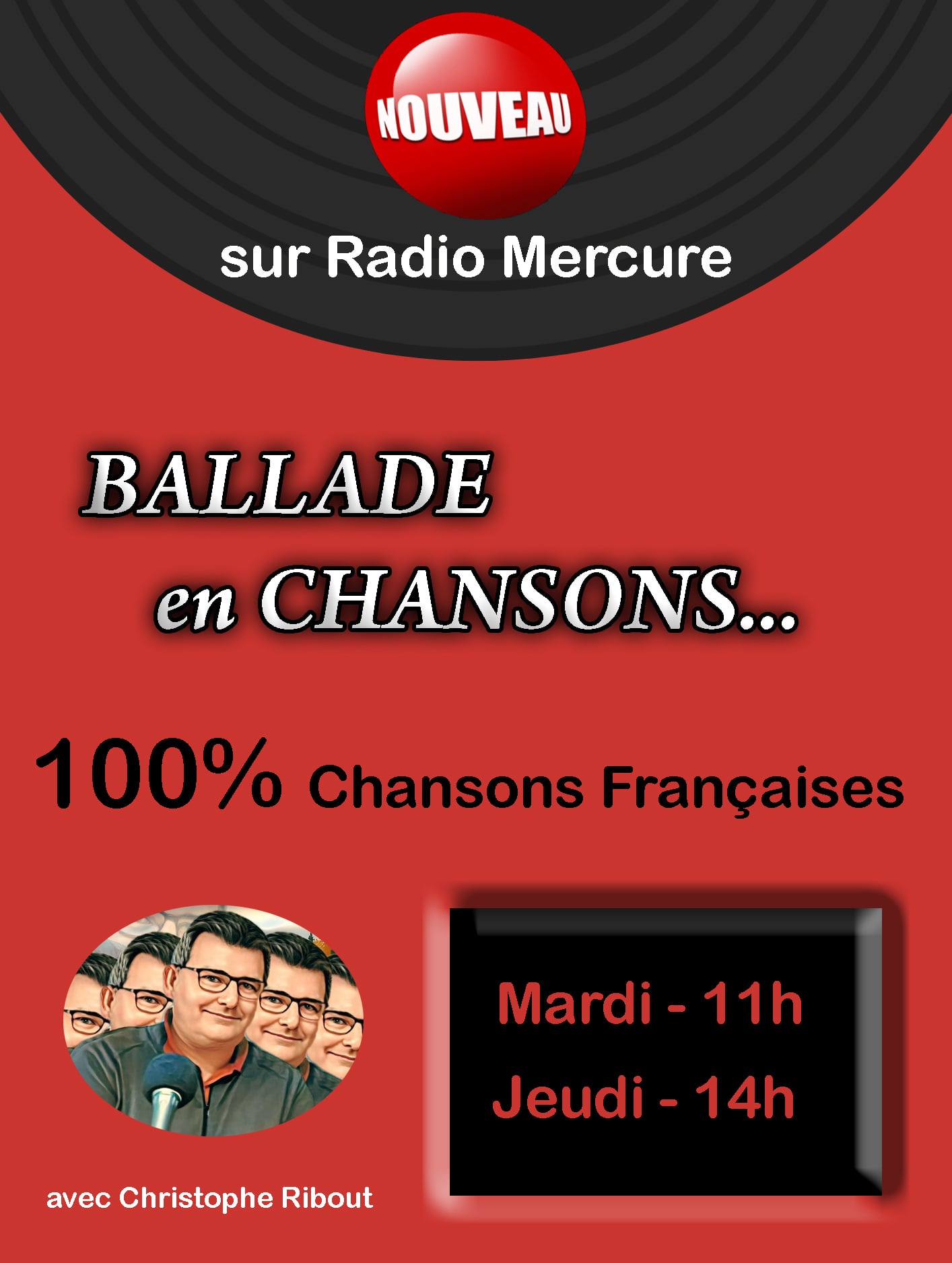 Amateurs de la chanson française, soyez à l’écoute de votre radio avec une nouvelle émission présentée par Christophe Ribout : BALLADE en CHANSONS ! Nouveautés, vos chansons préférées, vos plus beaux souvenirs et un zest de grands orchestres… vous retrouverez ce programme chaque MARDI à 11h et JEUDI à 14h (seconde diffusion) Ne manquez pas…